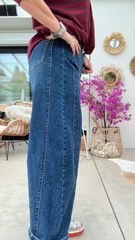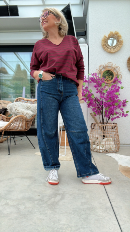 Deze blauwe barrel jeans heeft een iets wijdere pasvorm en een mooie, stevige denimlook.