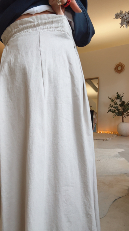 • Mooie beige rok met fijne plooitjes bovenaan