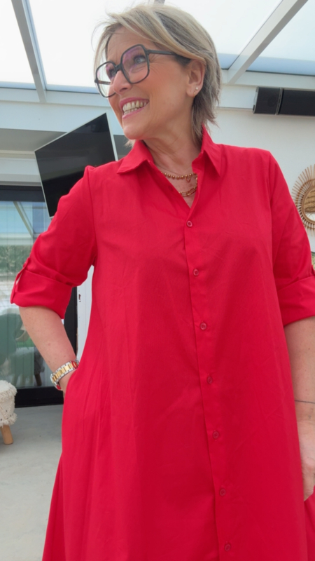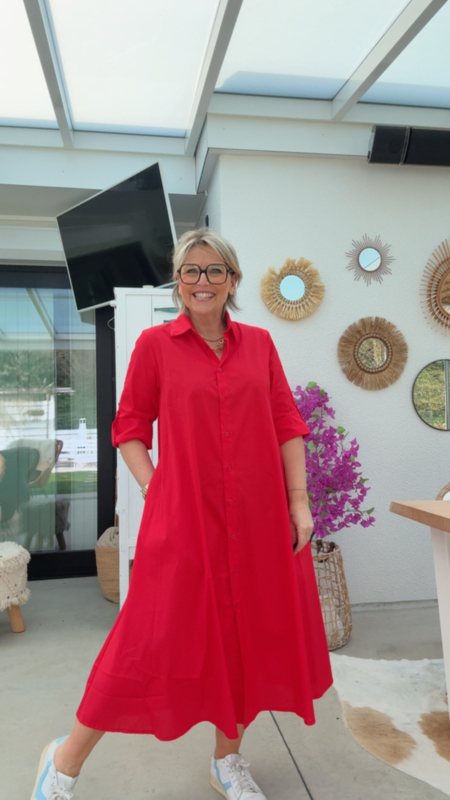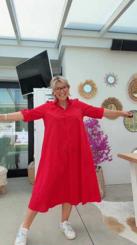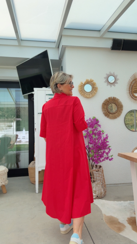 Dit elegante kleedje in een flatterend A-model valt los en soepel rond het lichaam en draagt daardoor heerlijk comfortabel. De knoopsluiting vooraan en de kraag geven het een stijlvolle, tijdloze uitstraling. Dankzij de mooie lengte en de luchtige snit is dit een jurk die je zowel casual als iets gekleder kan dragen.