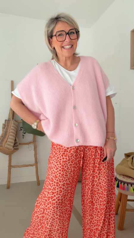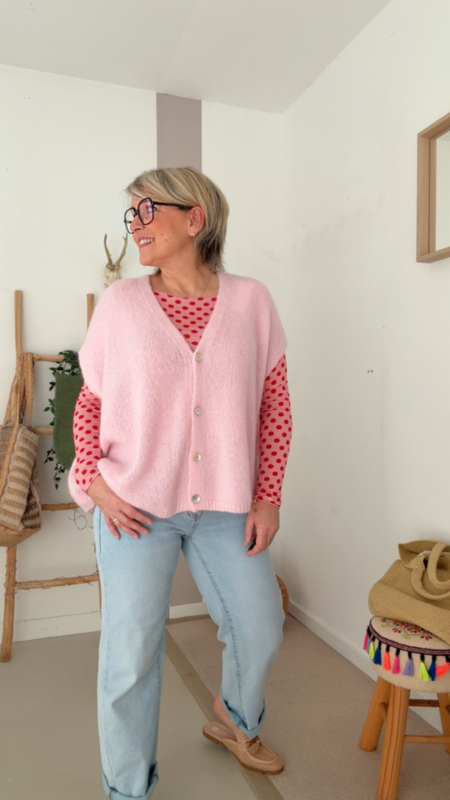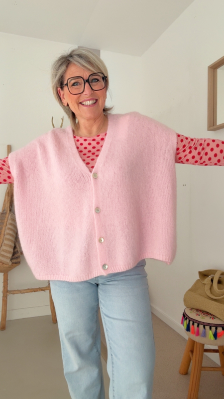 Deze cardigan is er eentje waar je meteen in wil kruipen. Heerlijk zacht, luchtig en toch warm genoeg, ideaal om het hele jaar door te dragen. De losse, oversized fit geeft een relaxte look, terwijl de fijne knoopjes en de zachte structuur zorgen voor een elegante uitstraling.