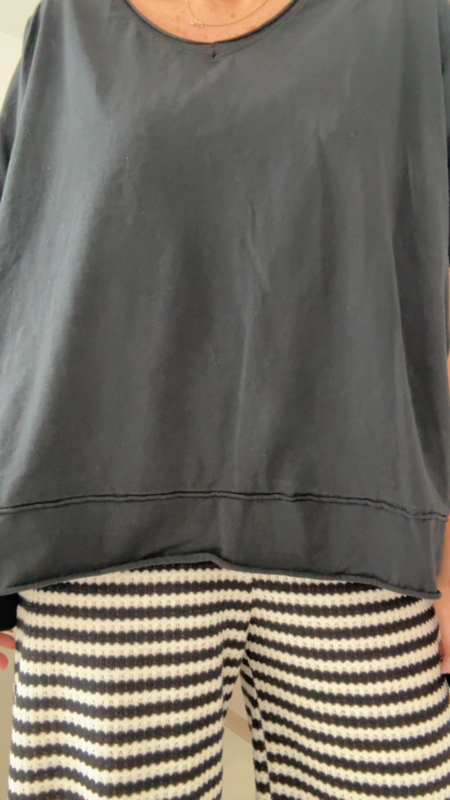 De stof voelt zacht en luchtig aan, ideaal voor de warmere dagen of om makkelijk te combineren in laagjes. Mooi op een zomerse broek zoals hier, maar evengoed perfect op een jeans of short.