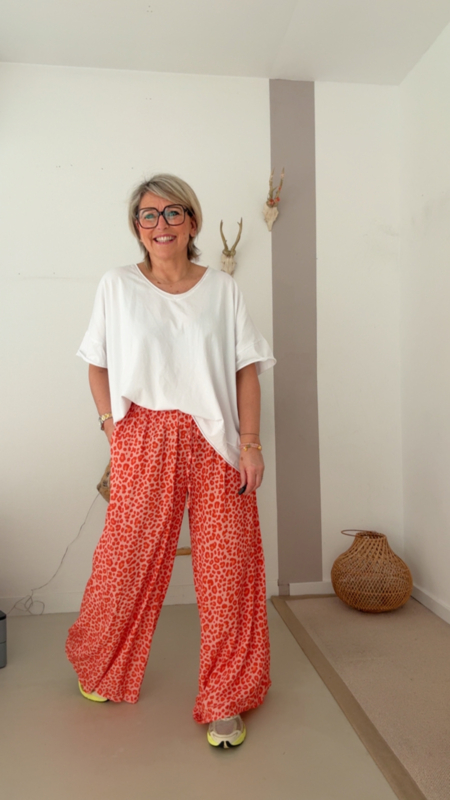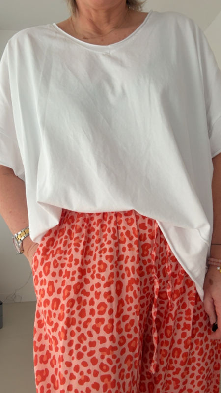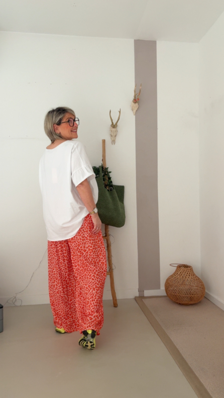 De leopard print geeft net dat beetje extra, zonder te druk te zijn. Supermooi te combineren met zachte tinten zoals deze top, maar ook heel tof met wit, roze of zelfs een felle kleur als je durft.