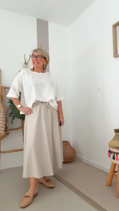 Zacht, soepel en luchtig om te dragen, perfect voor het voorjaar en de zomer. Supermooi basic stuk dat je eindeloos kan combineren, zowel casual als iets meer gekleed