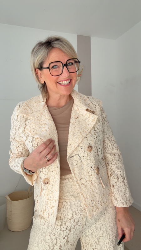 De stof valt soepel en sluit mooi aan zonder strak te zitten. Door de lichte transparantie is het ideaal om te combineren met een topje of BH eronder, en perfect onder een jasje of blazer zoals op de foto.