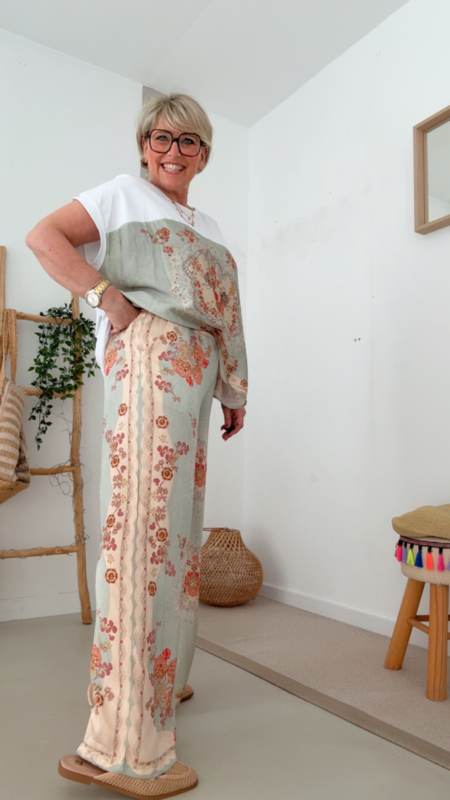 De print in zachte tinten zorgt voor een rustige, stijlvolle vibe en maakt hem echt een eyecatcher zonder te druk te zijn.