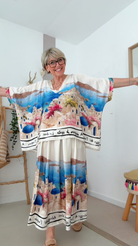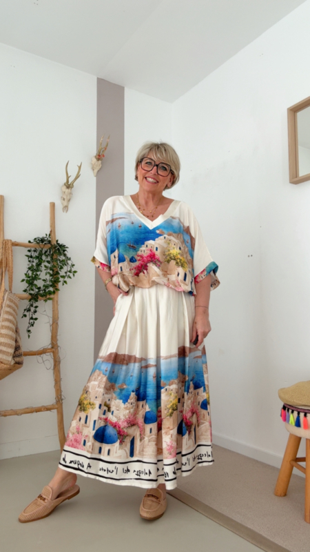 Perfect om te combineren met de bijpassende rok voor een echte set, maar ook heel mooi op een jeans of effen broek voor een frisse, zomerse look ☀️🤍
