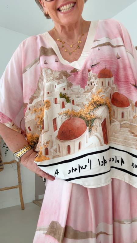 Prachtige blouse met V-hals en een unieke print die je meteen doet denken aan zonnige, zuiderse sferen 🌸