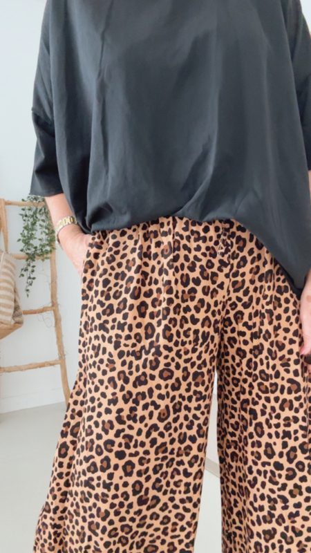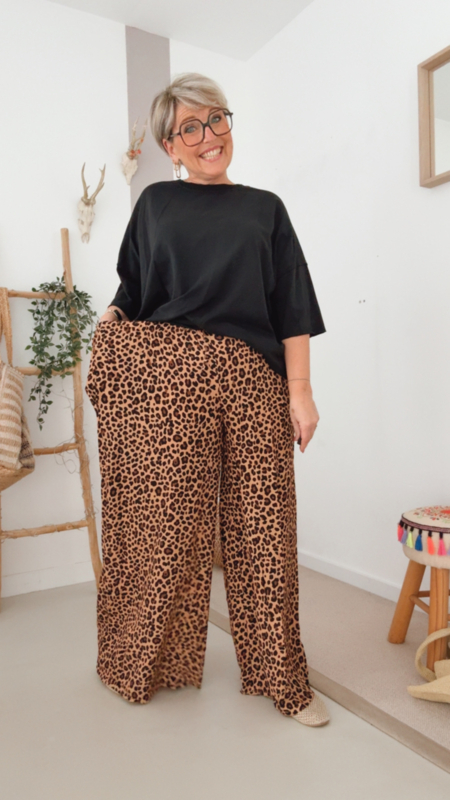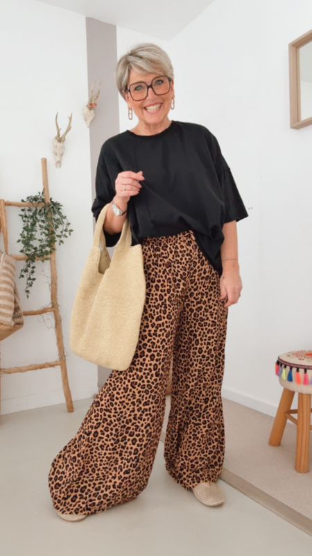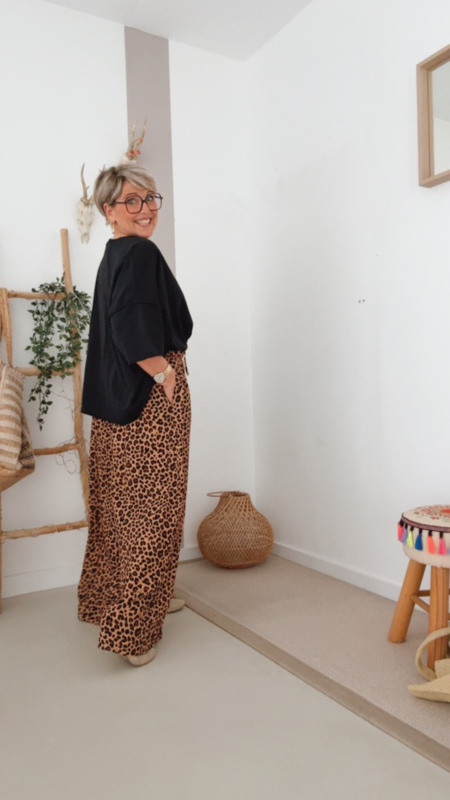 De leopard print geeft net dat beetje extra, zonder te druk te zijn. Supermooi te combineren met zachte tinten zoals deze top, maar ook heel tof met bruin, zwart, wit of zelfs een felle kleur als je durft.