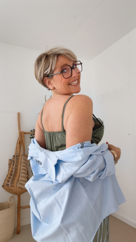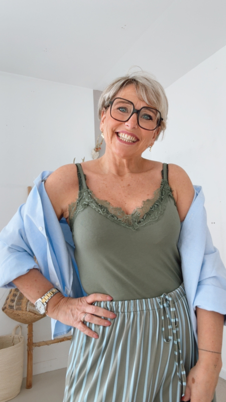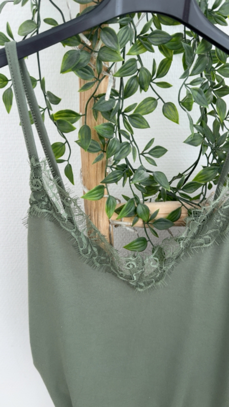 De fijne kantafwerking aan de halslijn zorgt voor een zachte, vrouwelijke touch zonder te overdreven te zijn. Simpel, maar toch speciaal.