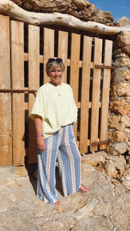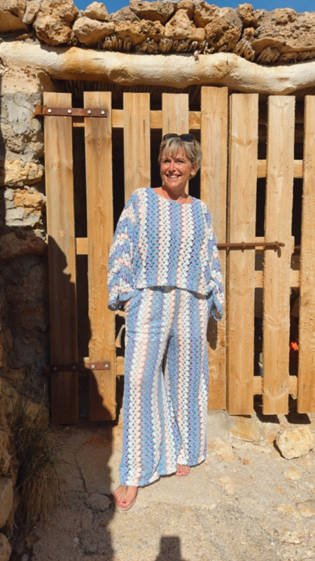 Deze gebreide broek is de perfecte match met de bijpassende blouse en vormt samen een supermooie set 💙
