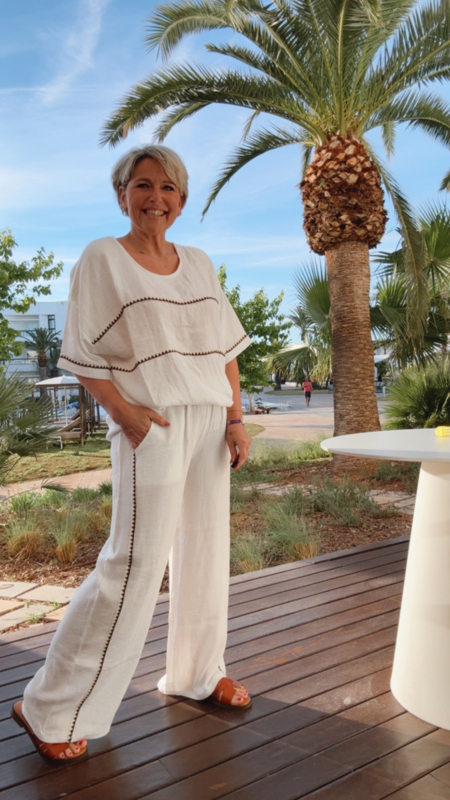 Een outfit waar je meteen dat relaxte, stijlvolle gevoel van krijgt, perfect voor zonnige dagen.