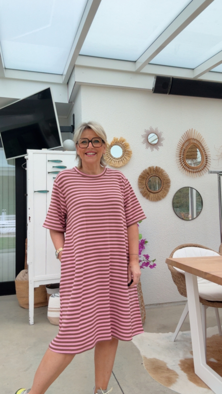 Dit leuke gestreepte T-shirt kleedje is een heerlijk comfortabel stuk dat je meteen wil aantrekken. De iets dikkere T-shirtstof zorgt ervoor dat het kleedje mooi valt en niet doorschijnt. Dankzij de…