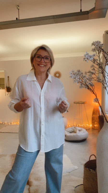 Dit zeer mooie witte hemdje is een echte basis die je eindeloos kan combineren. Dankzij de zachte stof en de losse, elegante pasvorm draagt het heerlijk licht en comfortabel. De V-hals zorgt voor een…