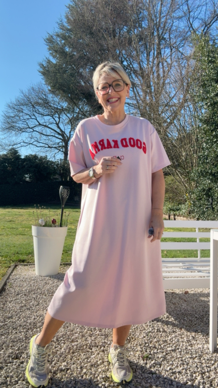Dit comfy T-shirtkleedje is gemaakt uit een zachte, iets stevigere huispakkenstof die heerlijk aanvoelt en mooi recht naar beneden valt. Ideaal voor dagen waarop je er leuk wil…