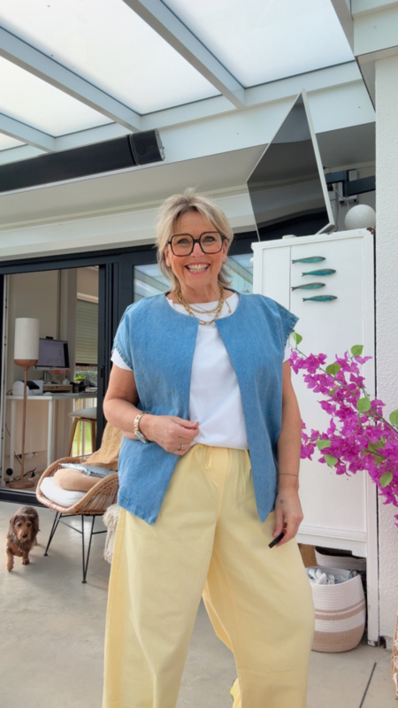 Deze jeans bodywarmer is echt zo’n stuk dat je overal over kan dragen. Licht, comfortabel en meteen een frisse, casual uitstraling. Mooi op een T-shirt, maar ook superleuk over een hemdje voor een iets gekledere look.