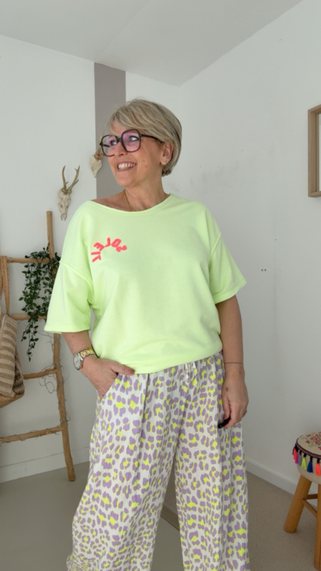 SoleilSuperleuke fluor gele trui met speelse teddy letters “Soleil" 💛