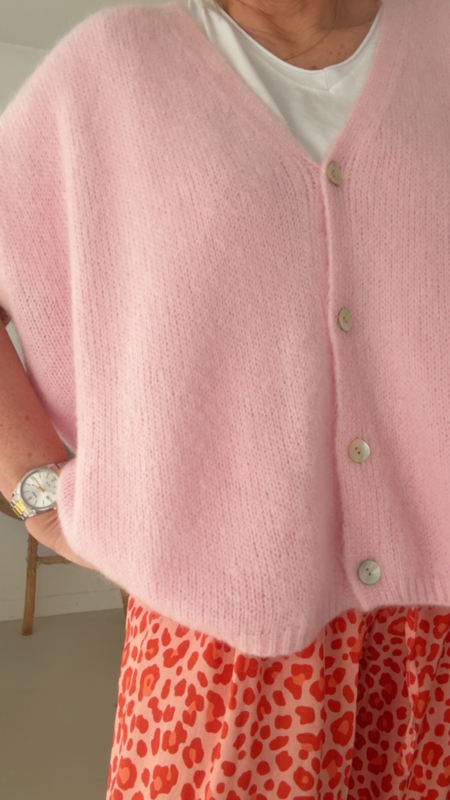 Nora rozeoversized cardigan in een tijdloze roze tint